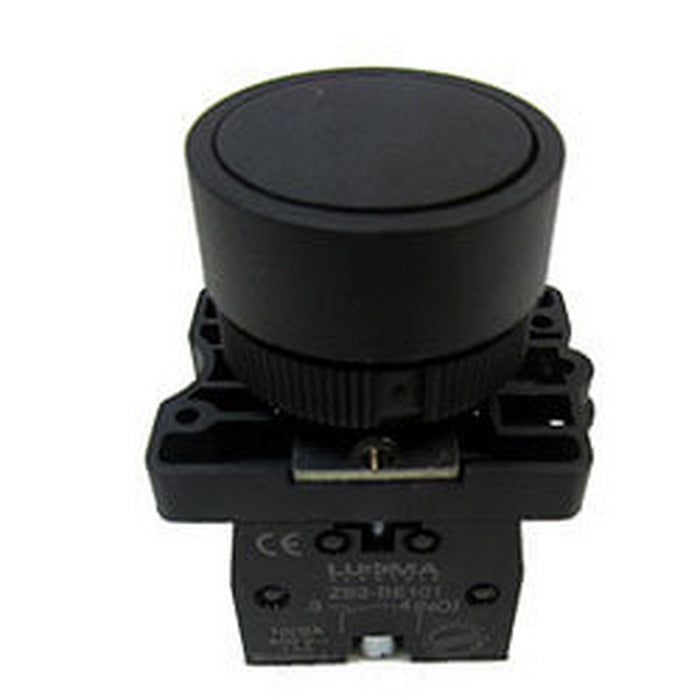 O BOTÃO LK2-EA21 (PRETO) PULSANTE 1NA Cód: 14008, da marca Lukma, é um botão de comando plástico, preto, com acionamento momentâneo (pulsante) e um contato normalmente aberto (1NA), ideal para funções como ligar/desligar, partidas e alertas em sistemas elétricos, necessitando de furo de 22mm e com tensão de isolação de 600V e corrente térmica de 10A.